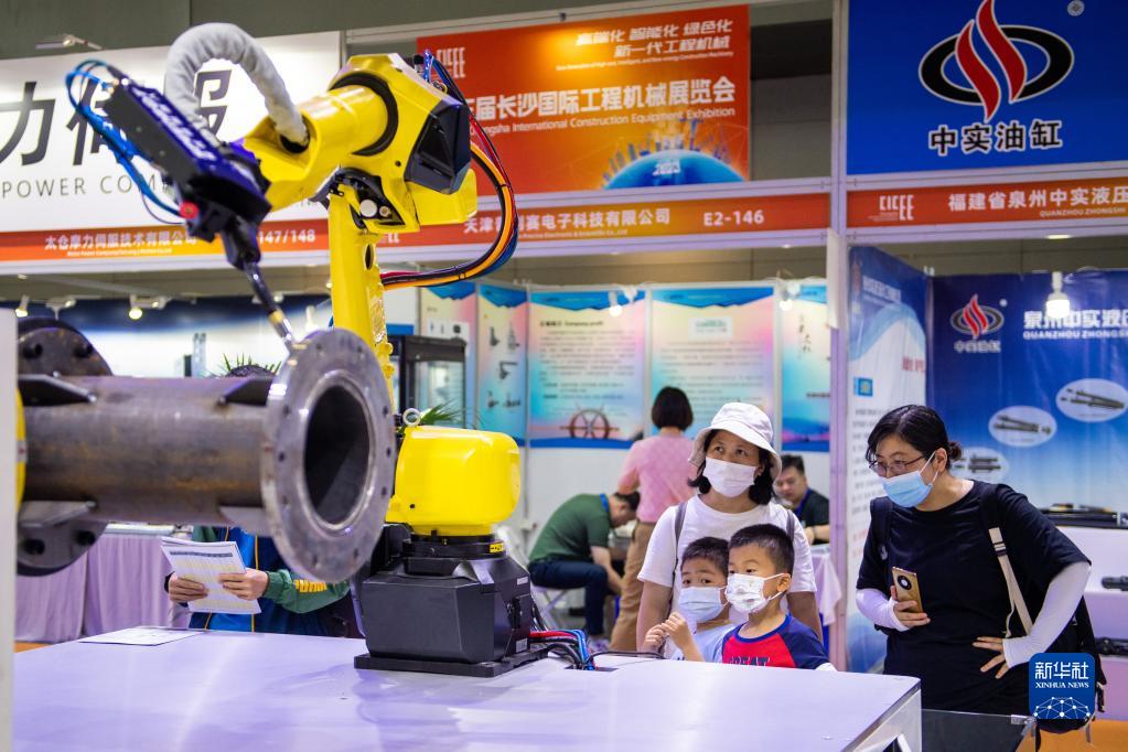 5月15日,在長(cháng)沙國際會(huì )展中心,觀(guān)眾在參觀(guān)展出的工程機械設備。
