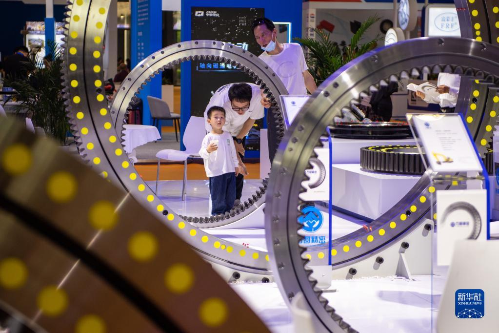 5月15日,在長(cháng)沙國際會(huì )展中心,觀(guān)眾在參觀(guān)展出的工程機械配件。