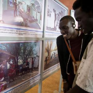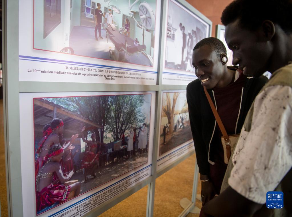 5月14日,在塞內加爾首都達喀爾,觀(guān)眾參觀(guān)中國醫療隊派遣60周年圖片展。