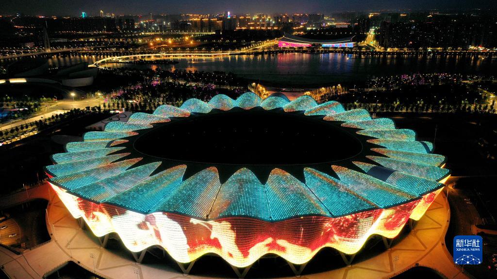 位于西安國際港務(wù)區的西安奧體中心(5月1日攝,無(wú)人機照片)。
