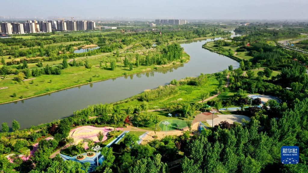 西咸新區灃河兩岸景象(4月29日攝,無(wú)人機照片)。