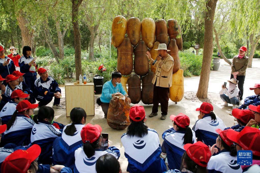 近日,寧夏固原市青少年示范性綜合實(shí)踐基地組織學(xué)生來(lái)到寧夏中衛市沙坡頭區,開(kāi)展以“探究自然環(huán)境,傳播綠色文明”為主題的研學(xué)活動(dòng),通過(guò)徒步沙漠體驗、學(xué)習羊皮筏子制作工藝、扎麥草方格等活動(dòng),培養學(xué)生了解自然、親近自然、保護自然的意識。新華社發(fā)(袁宏彥攝)