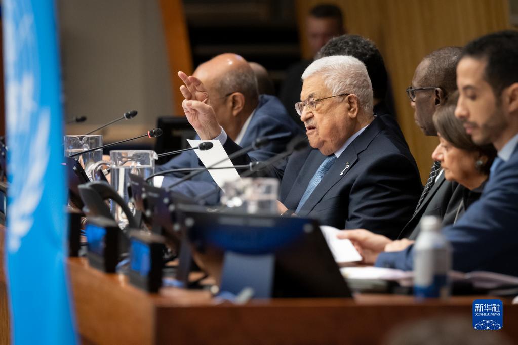 5月15日,巴勒斯坦總統阿巴斯(中)在聯(lián)合國巴勒斯坦人民行使不可剝奪權利委員會(huì )高級別會(huì )議上致辭。