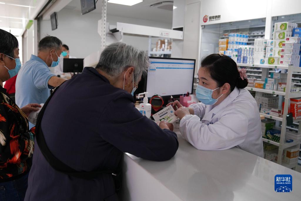 5月16日,在江蘇省鎮江市潤州區黎明社區衛生服務(wù)中心,醫務(wù)人員向一名老人講解用藥方法。
