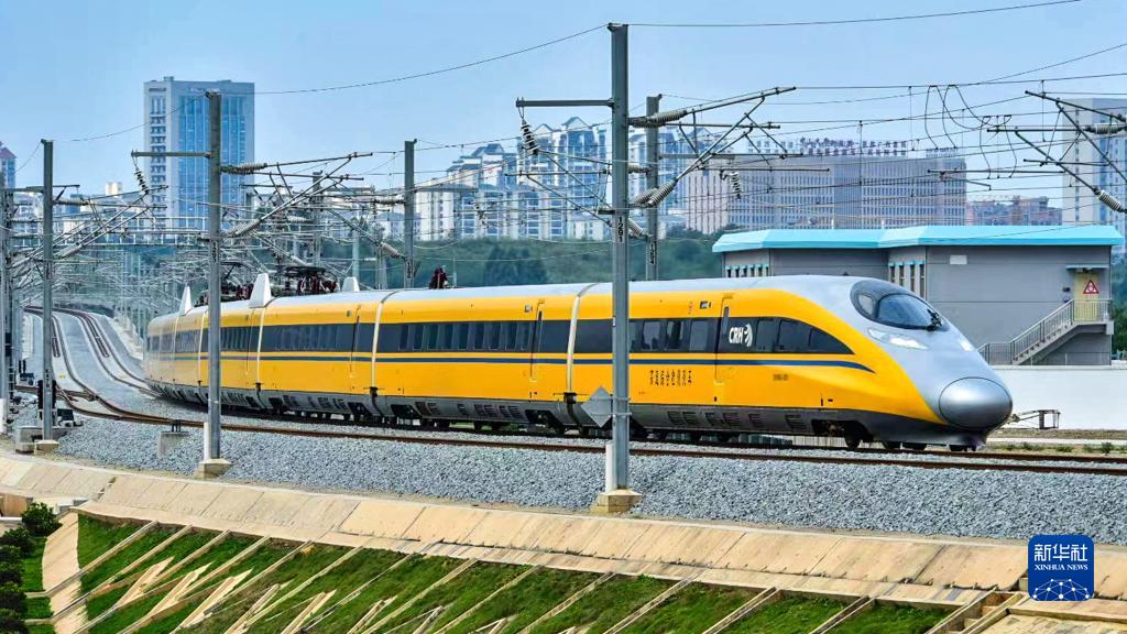 當日 ,CRH380AJ-0203高速綜合檢測列車(chē)對貴南高鐵全線(xiàn)進(jìn)行逐級提速試驗,以時(shí)速180公里的速度級,對南寧東至荔波站區間高鐵沿線(xiàn)的軌道、信號、通信、電務(wù)、綜合接地等多個(gè)項目進(jìn)行檢測。列車(chē)因車(chē)身涂裝成醒目的黃色,又被稱(chēng)為“黃醫生”。
