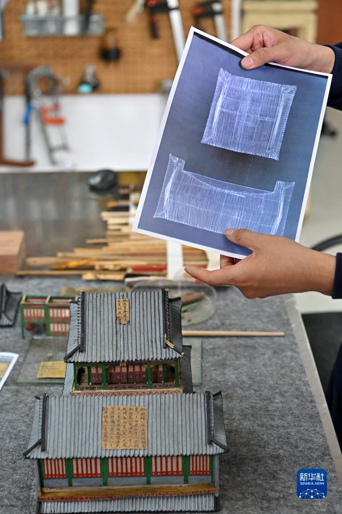 5月16日,國博文保院修復師向媒體記者介紹通過(guò)科學(xué)檢測手段分析研究圓明園同樂(lè )園建筑群樣式雷燙樣文物材質(zhì)、構造等內容。