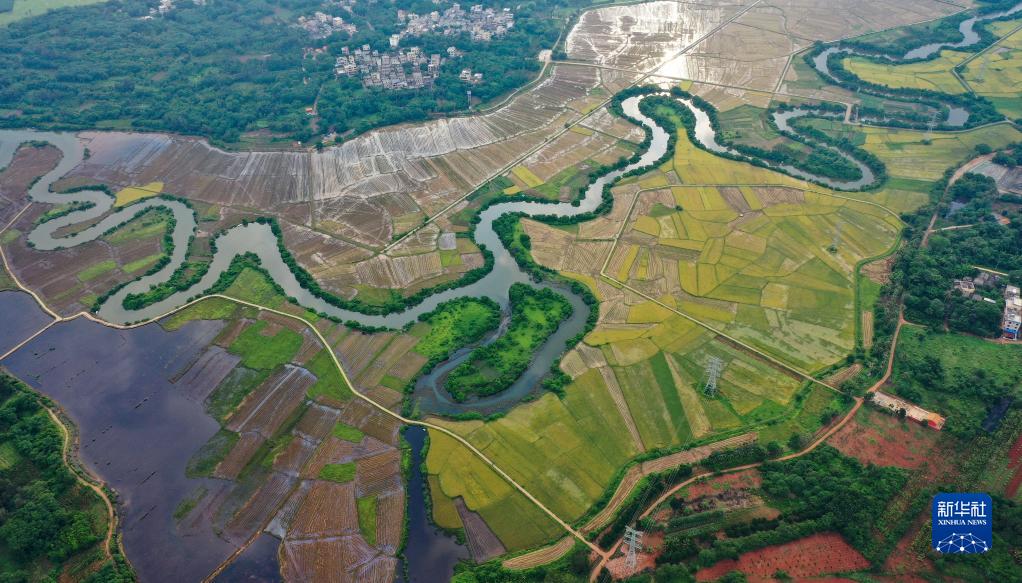 5月以來(lái),位于??谑腥獌砂兜乃具M(jìn)入夏收時(shí)節,一片片成熟的稻田與蜿蜒曲折的河道交織,勾勒出一幅美麗的畫(huà)卷。