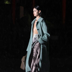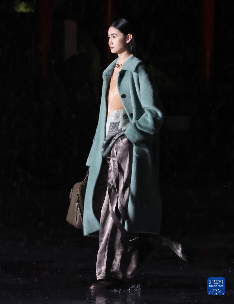 5月16日,模特在雨中展示XG 2023冬季系列時(shí)裝。