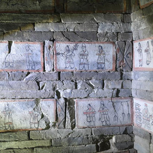 在位于甘肅省嘉峪關(guān)市的嘉峪關(guān)魏晉墓六號墓中,一幅幅色調明快、線(xiàn)條流暢、生動(dòng)形象的磚畫(huà)講述了1700多年前魏晉時(shí)期的人們宰羊切肉、用叉烤肉、宴請賓客的場(chǎng)景。