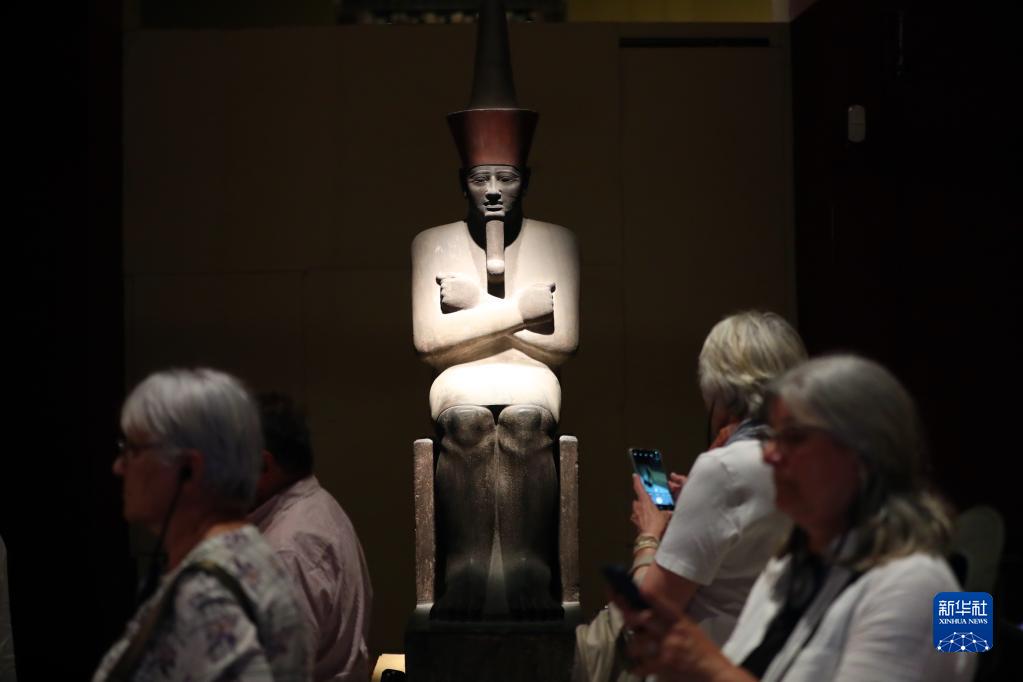 5月16日,在位于埃及首都開(kāi)羅的埃及博物館,人們走過(guò)古埃及法老門(mén)圖荷太普二世的坐像。