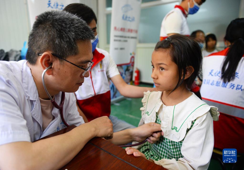 5月16日,在墨玉縣人民醫院,鄭州市第七人民醫院的醫療專(zhuān)家為孩子做檢查。