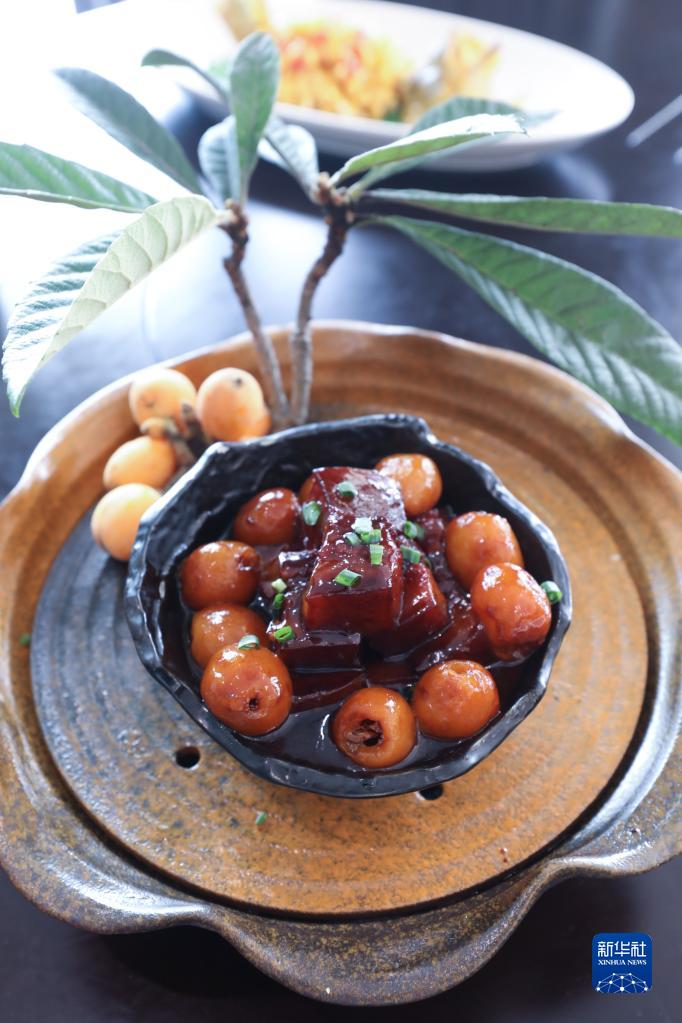 塘棲鎮塘棲村的一家餐廳制作的枇杷特色菜(5月17日攝)。