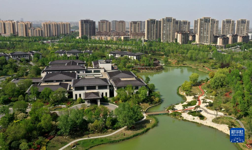 位于西安浐灞生態(tài)區的西安國際會(huì )議中心(4月16日攝,無(wú)人機照片)。