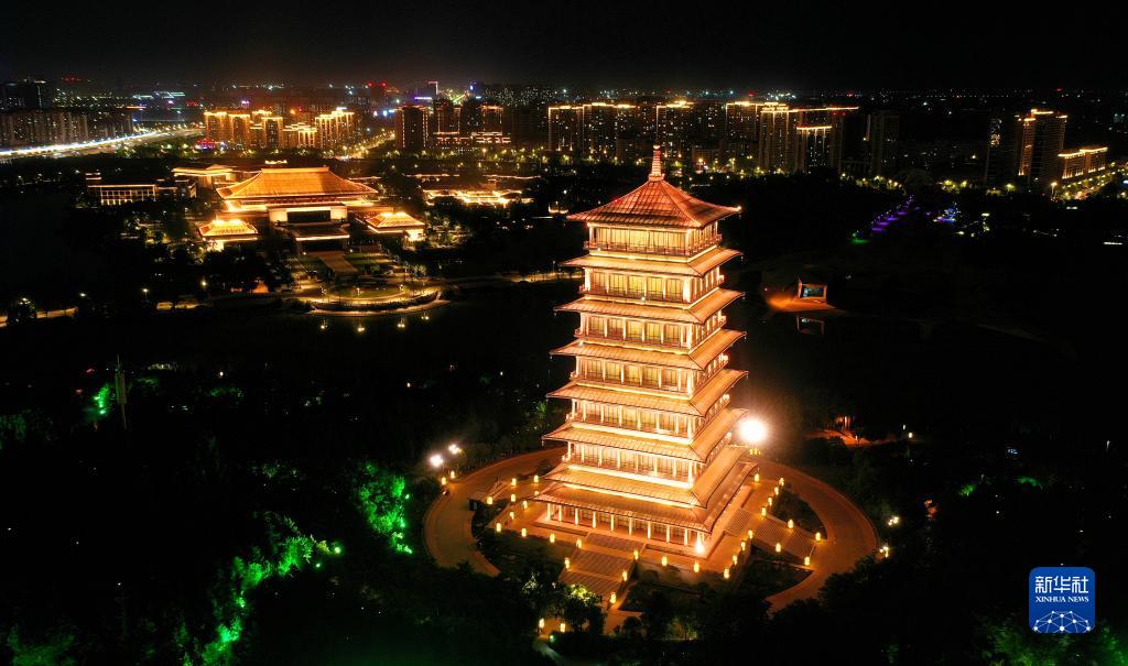 位于西安浐灞生態(tài)區的長(cháng)安塔(5月1日攝,無(wú)人機照片)。