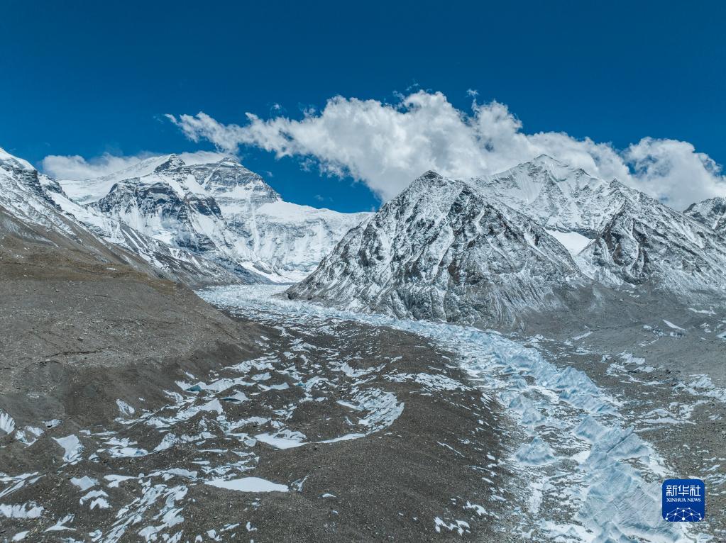 這是珠峰腳下的中絨布冰川(5月15日攝,無(wú)人機照片)。