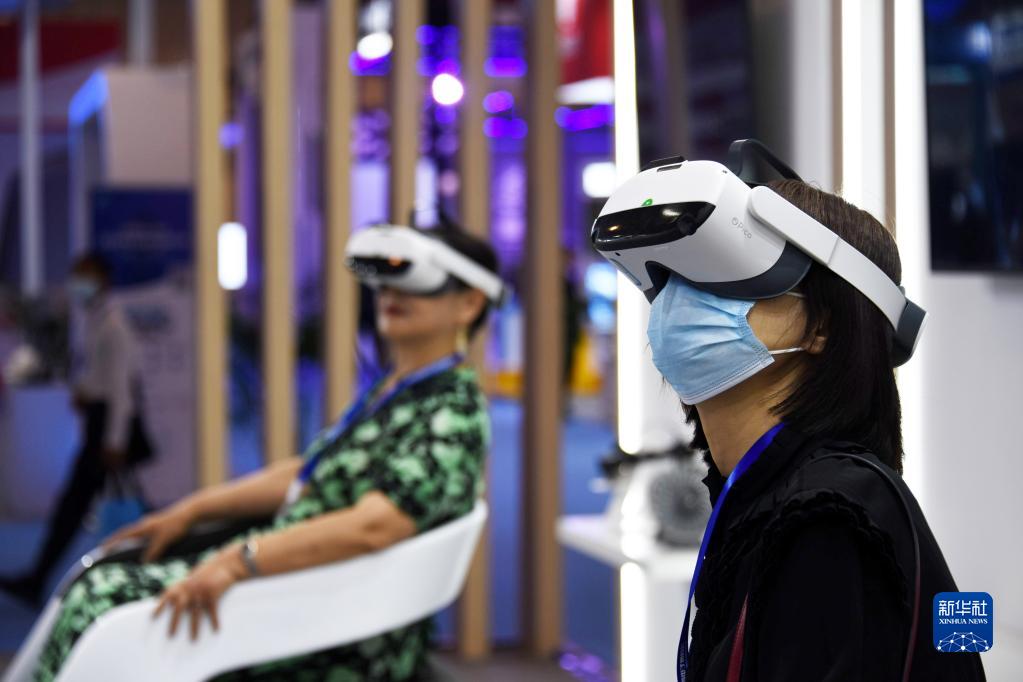 5月17日,參觀(guān)者在展會(huì )上體驗VR。