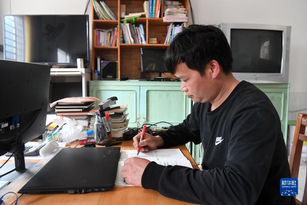 5月17日,在廣西靈川縣海洋鄉中心岐教學(xué)點(diǎn),蔡教宏在備課。