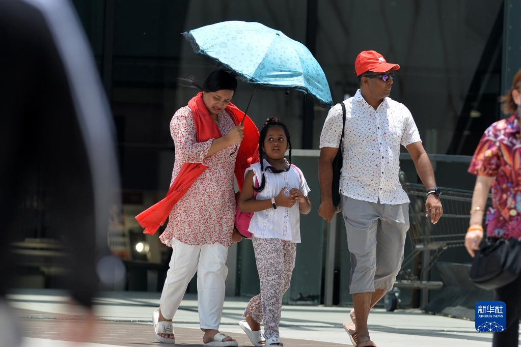 5月17日,行人在泰國曼谷街頭用傘遮陽(yáng)。