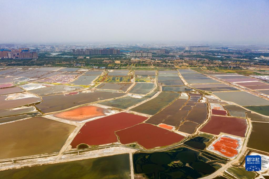 這是5月17日拍攝的運城鹽湖一景(無(wú)人機照片)。