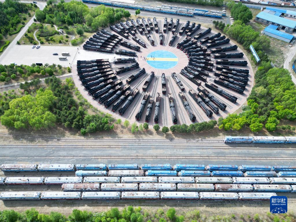 這是5月17日拍攝的大安北蒸汽機車(chē)陳列館(無(wú)人機照片)。
