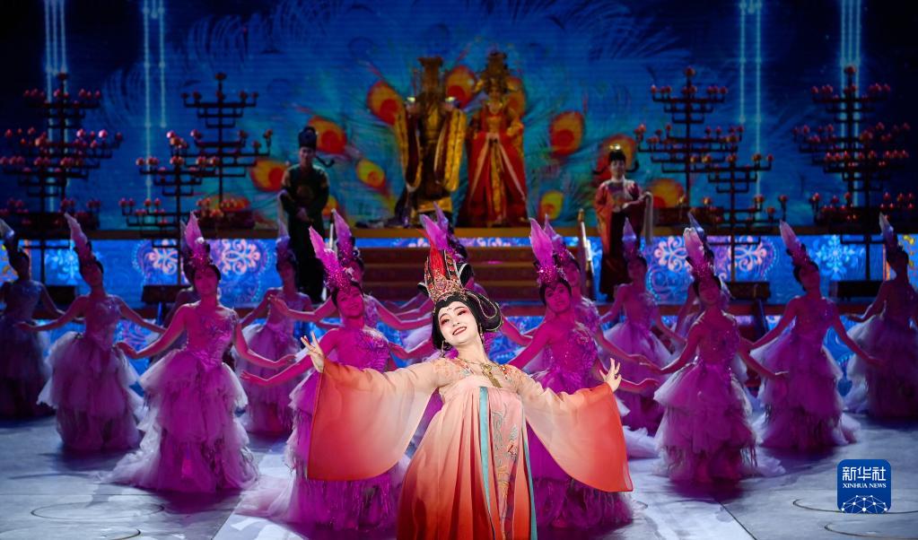 西安大唐芙蓉園內上演的歌舞劇《夢(mèng)回大唐》(1月24日攝)。