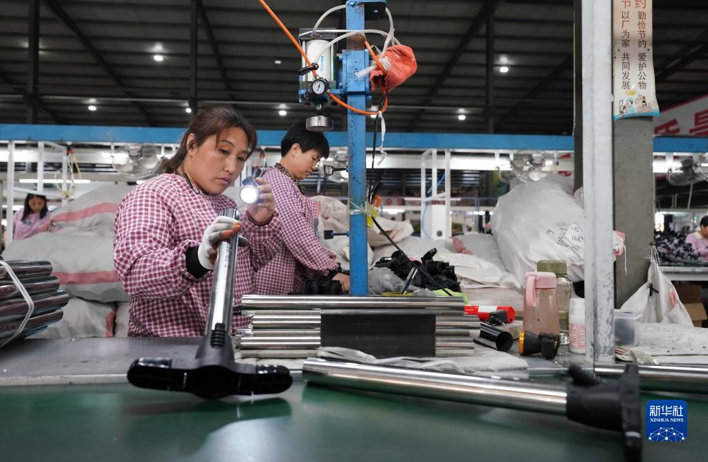 5月18日,河北省平鄉縣一家打氣筒生產(chǎn)企業(yè)的工人在檢查打氣筒質(zhì)量。