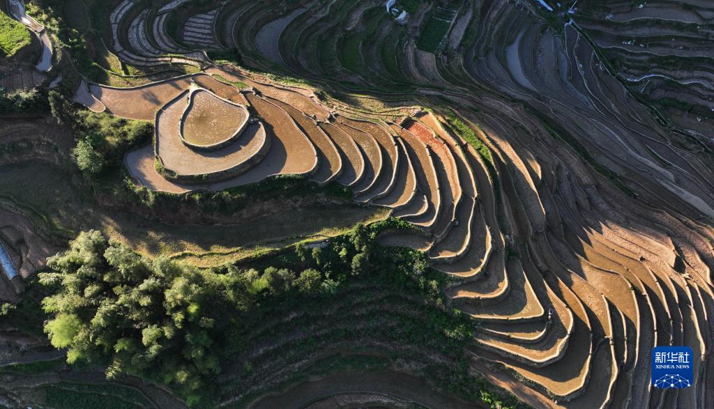 近日,湖南省婁底市新化縣紫鵲界梯田蓄水備耕,水影天光如詩(shī)如畫(huà)。