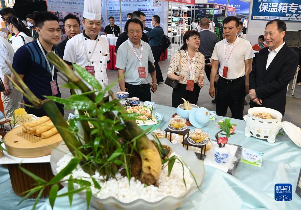 5月18日,參觀(guān)者在2023福建八閩文化主題宴席“建州筍宴”展位前參觀(guān)。