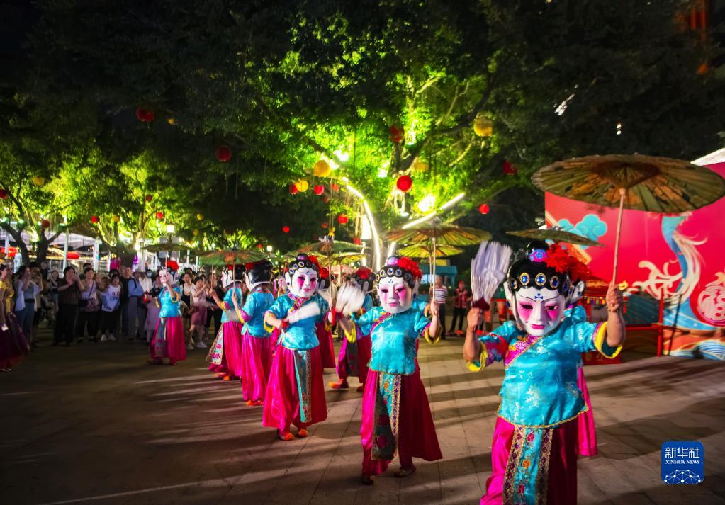 當日,“有福之州 博物館之夜”主題活動(dòng)在古城福州舉行。該活動(dòng)將福州作為一個(gè)開(kāi)放式的“古厝博物館”,以福州城市中軸線(xiàn)和山水走廊為框架,串聯(lián)起三坊七巷歷史文化街區、上下杭歷史文化街區、煙臺山歷史風(fēng)貌區等文博景觀(guān)群落,通過(guò)夜間光影秀、劇場(chǎng)表演、文博集市、文博派對、博物館研學(xué)、非遺展演等一系列活動(dòng)展現古城福州的魅力。新華社記者 魏培全 攝