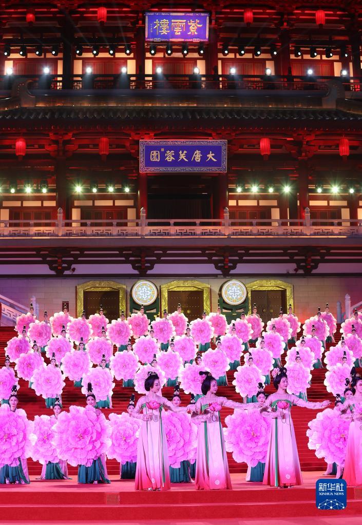 5月18日晚,出席中國-中亞峰會(huì )的中亞國家元首夫婦陸續抵達陜西省西安市大唐芙蓉園,參加在這里舉行的歡迎儀式。這是演員在歡迎儀式上表演。新華社記者 徐子鑒 攝