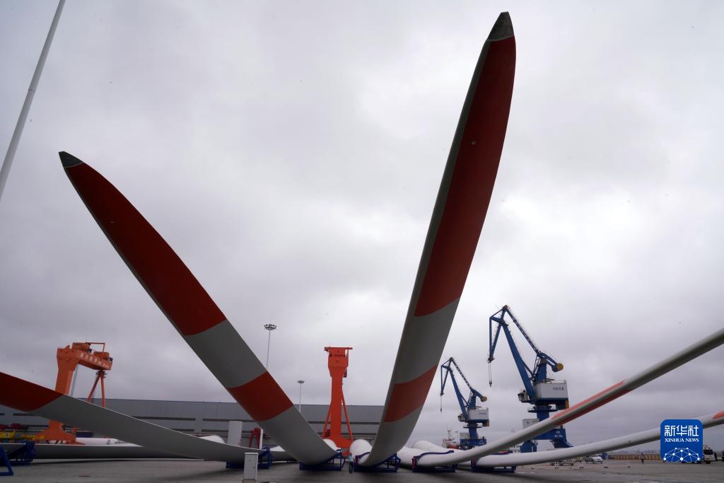 5月18日在江蘇如東小洋口風(fēng)電母港拍攝的風(fēng)電設施組件。