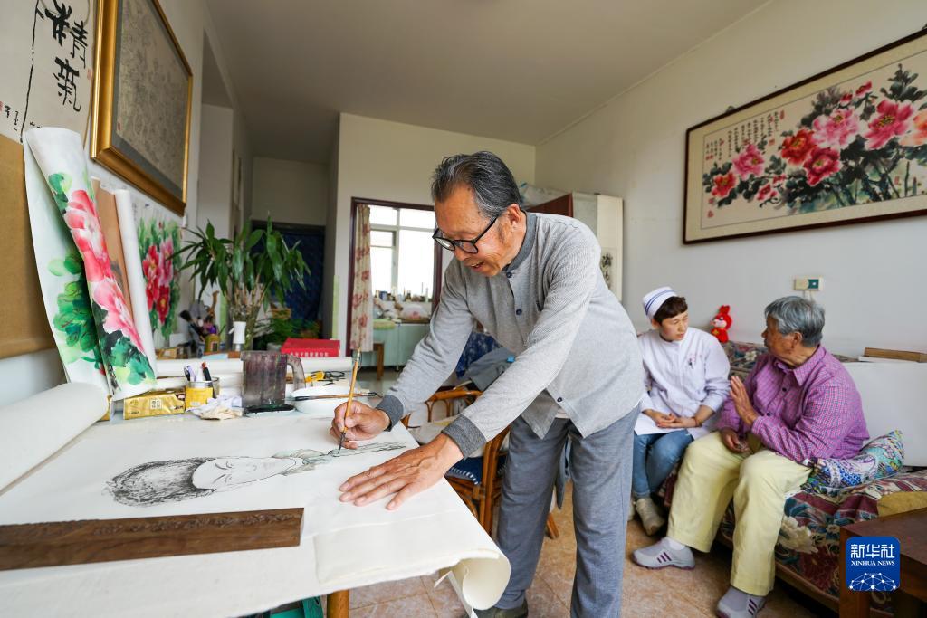 5月19日,居住在河北省灤南縣一家養老機構的老人在練習繪畫(huà)。