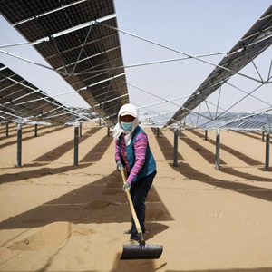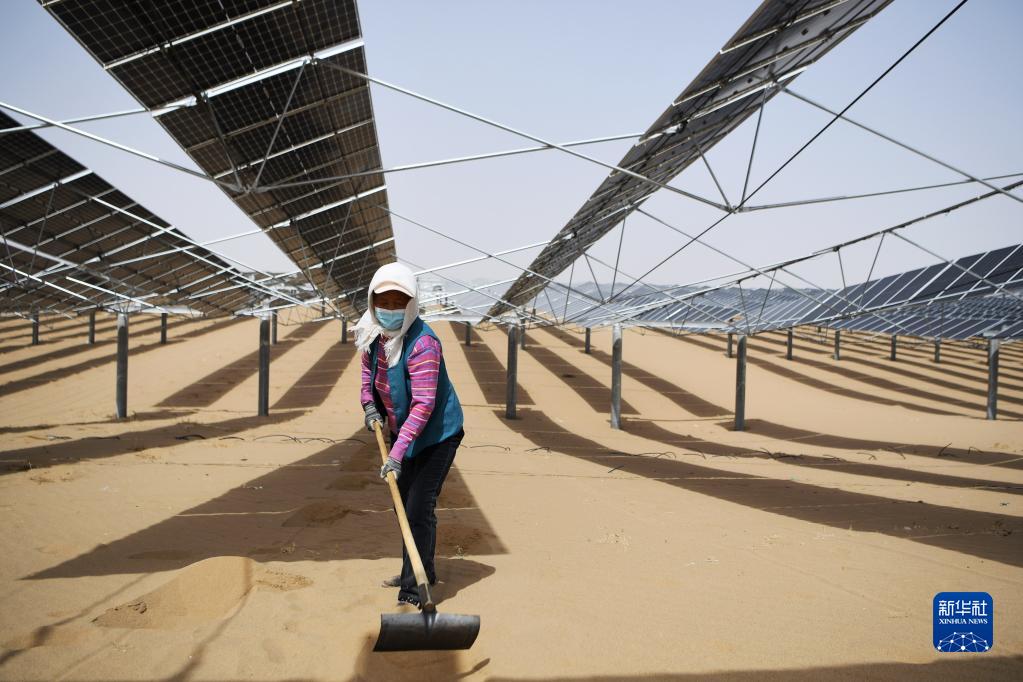 近年來(lái),甘肅省武威市涼州區持續探索光伏治沙新模式,在騰格里沙漠重點(diǎn)實(shí)施立體光伏治沙產(chǎn)業(yè)化示范項目,建設光伏電站的同時(shí),在光伏板下栽植耐旱沙生植物,將太陽(yáng)能開(kāi)發(fā)與騰格里沙漠治理有機結合,實(shí)現經(jīng)濟效益和生態(tài)效益雙贏(yíng)。