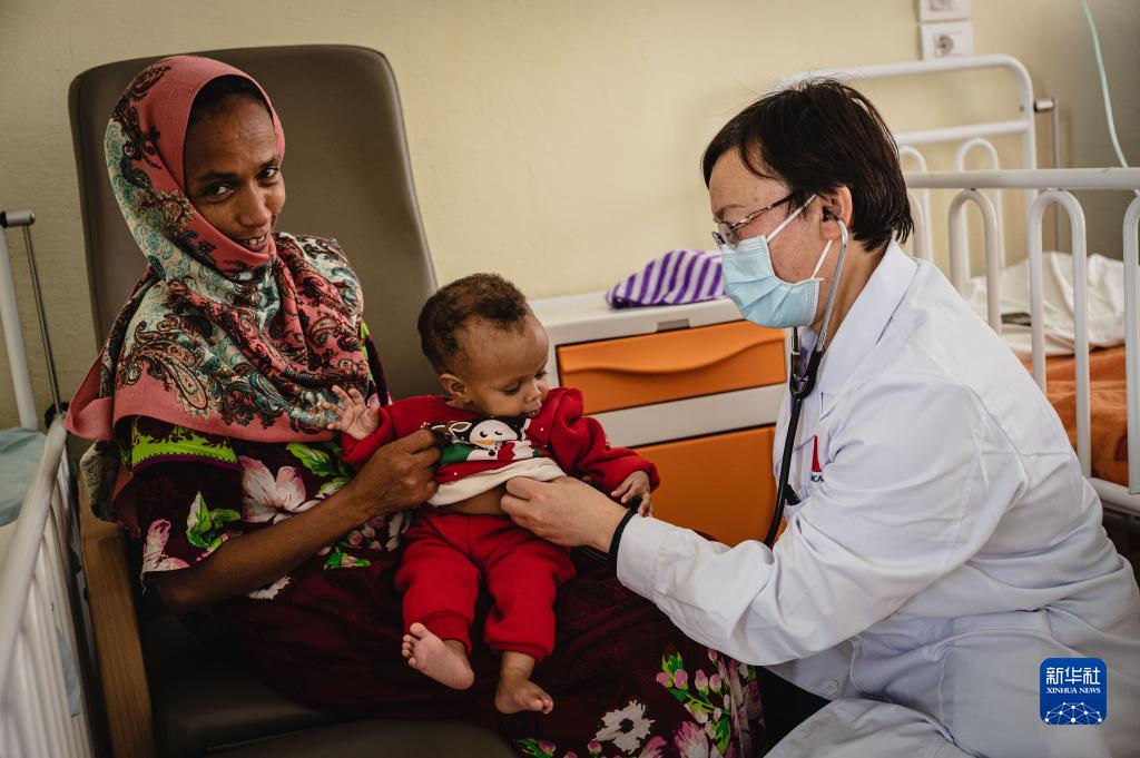 5月9日,在厄立特里亞首都阿斯馬拉的奧羅特醫院,醫療隊兒科醫生張春燕(右)為小朋友聽(tīng)診。