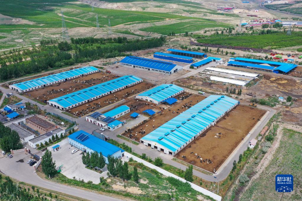 這是5月19日拍攝的新疆伊寧市巴彥岱鎮奶牛養殖場(chǎng)(無(wú)人機照片)。