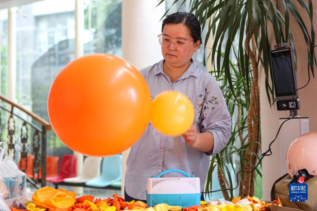 劉瑩在上海虹口區青少年活動(dòng)中心制作氣球(5月18日攝)。