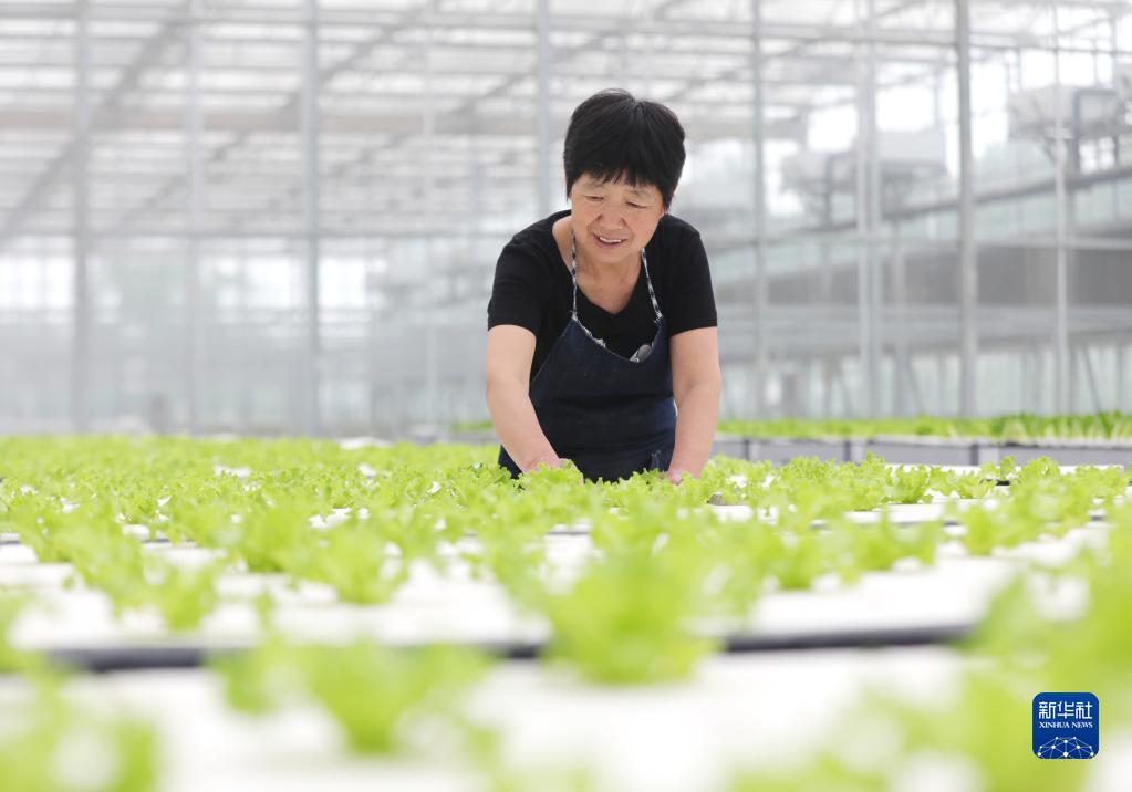 5月20日,河北省保定市徐水區一家現代農業(yè)示范園區的工作人員在智能溫室內查看水培蔬菜生長(cháng)情況。