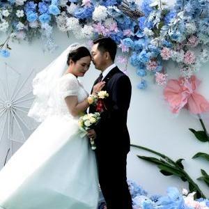 5月20日,新人們以休整中的動(dòng)車(chē)組列車(chē)為背景拍攝婚紗照。