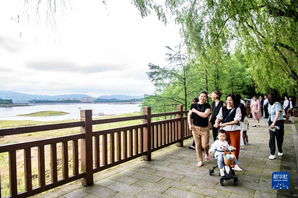 5月16日,游客在重慶市長(cháng)壽湖風(fēng)景區游玩。新華社記者 唐奕 攝
