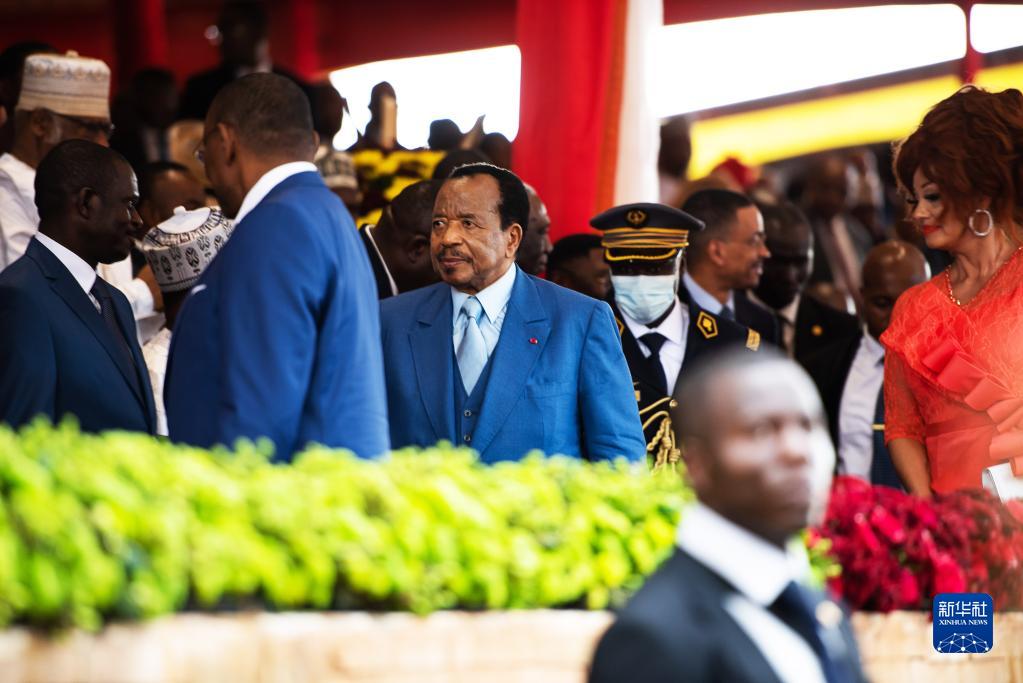 5月20日,喀麥隆總統比亞(中)在首都雅溫得出席國慶慶?;顒?dòng)。