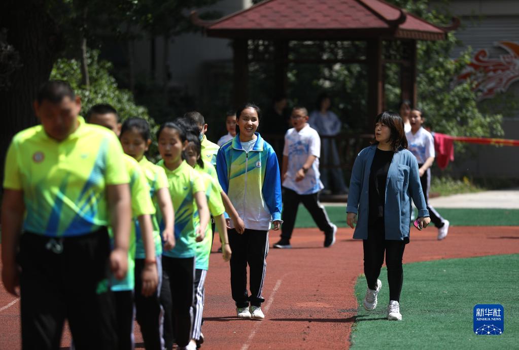 5月19日,課間操時(shí)間,莊巖帶著(zhù)學(xué)生在操場(chǎng)上步行。