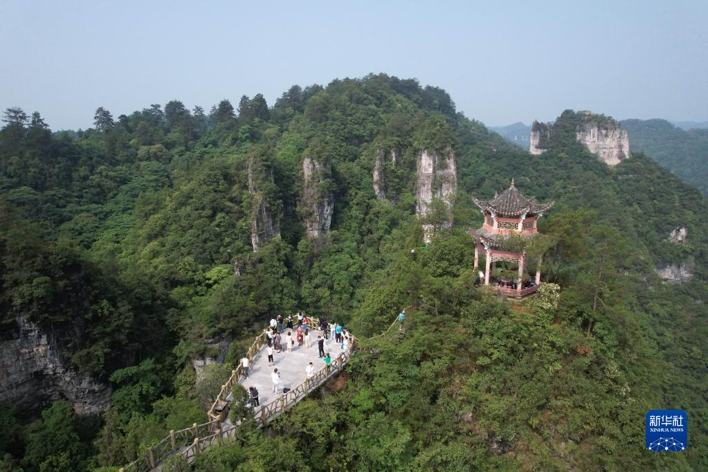 5月21日,游客在貴州省黔東南苗族侗族自治州施秉縣云臺山景區游覽觀(guān)光(無(wú)人機照片)。