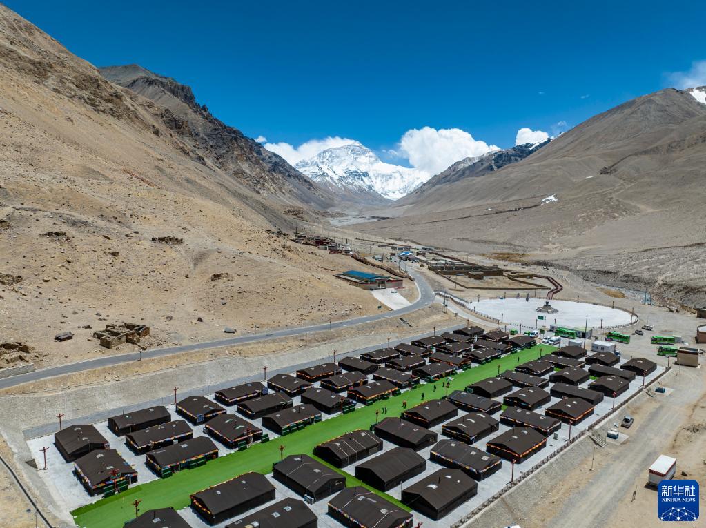 這是珠峰游客大本營(yíng)的帳篷旅館(5月20日攝,無(wú)人機照片)。