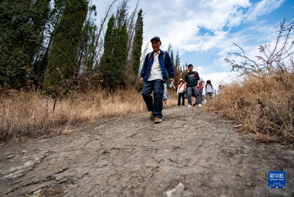 張世山(左一)在巡護梅樹(shù)村剖面(5月10日攝)。