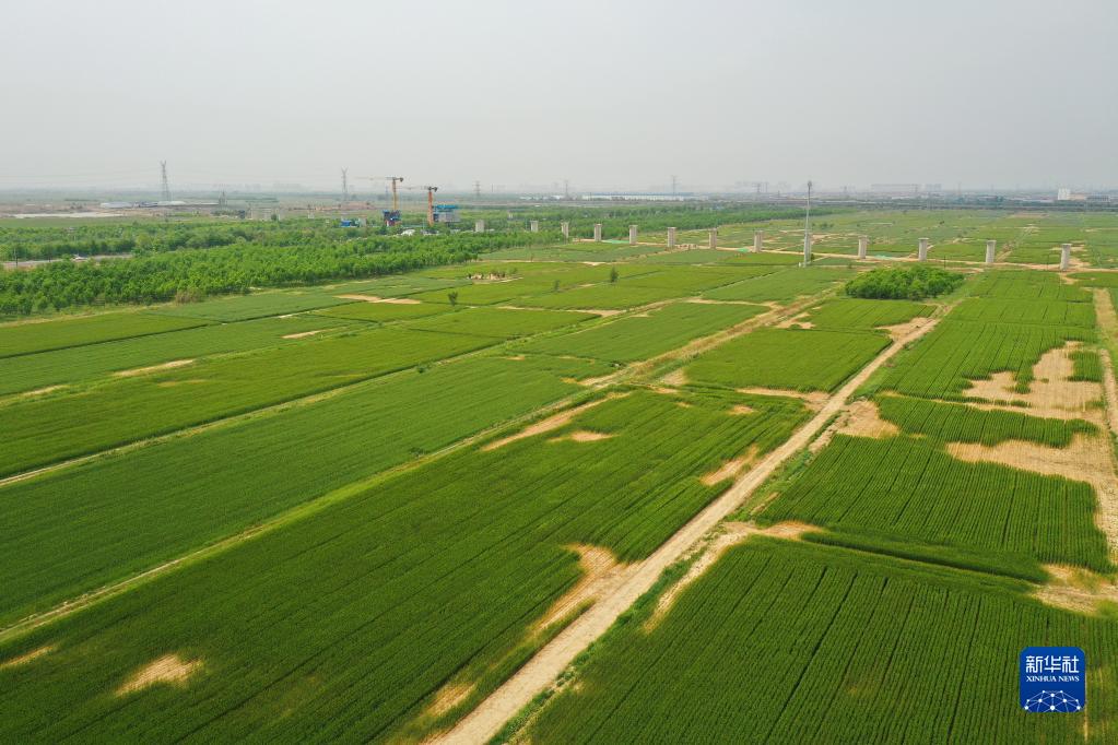 滄州渤海新區黃驊市舊城鎮仙莊片區旱堿地麥田(5月11日攝,無(wú)人機照片)。