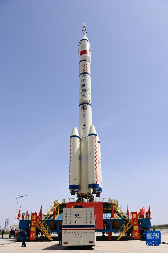 5月22日,神舟十六號載人飛船與長(cháng)征二號F遙十六運載火箭組合體在轉運途中。
