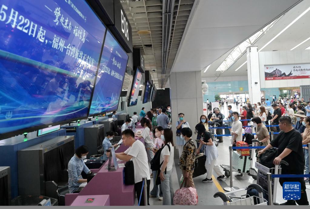 5月22日,旅客在福州長(cháng)樂(lè )國際機場(chǎng)辦理登機手續。