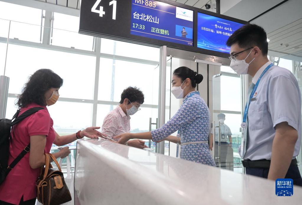 5月22日,旅客在福州長(cháng)樂(lè )國際機場(chǎng)辦理飛往臺北松山機場(chǎng)的MF883航班登機手續。