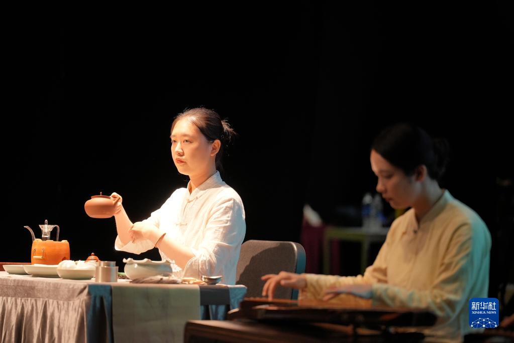 5月20日,表演者在新加坡中國文化中心舉行的“茶和天下·粵韻雅集”活動(dòng)中進(jìn)行茶藝展示和古琴演奏。