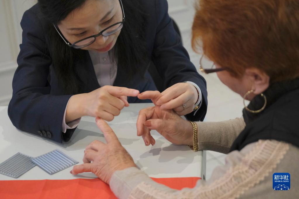 5月22日,在馬耳他保拉市,第18期中國援馬耳他醫療隊隊長(cháng)董曉燕為一名婦女提供健康咨詢(xún)服務(wù)。
